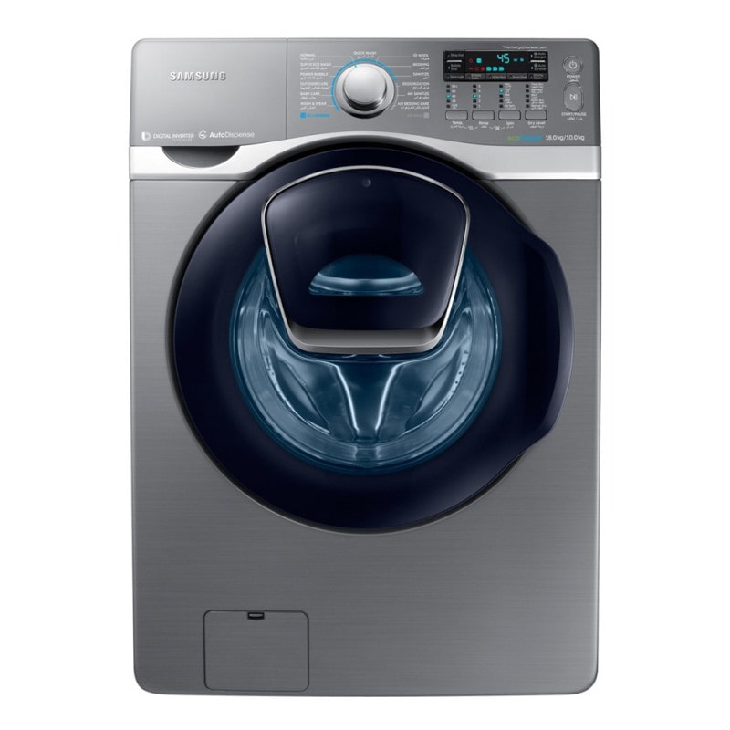- غسالة سامسونج سعتها 18 كيلو جرام وسعة التجفيف 10 كجم وهذا يتيح لك غسل أكبر كمية من الملابس في نفس الوقت وبسرعة شديدة وبالتالي توفر الوقت والمجهود المبذول في تكرار الغسيل بين الحين والآخر.